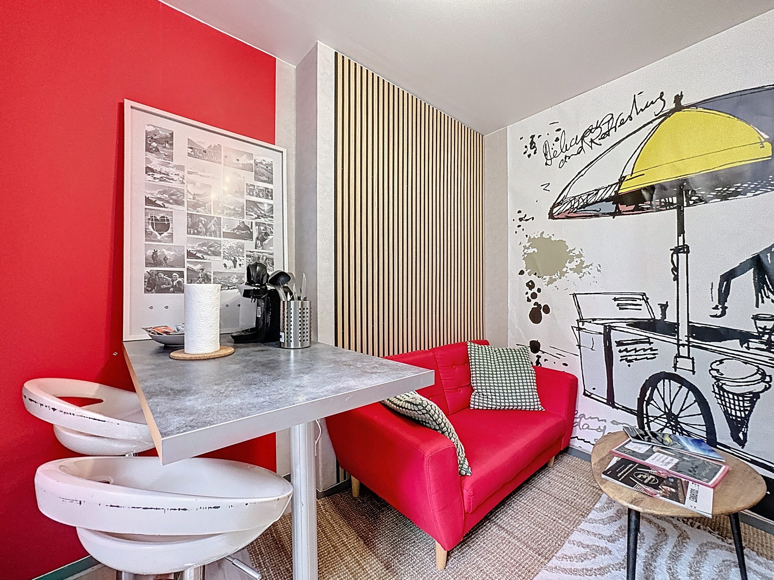 Arrivée à partir de 17h par boîte à clés. Pour votre petit déjeuner : Café, thé ou chocolat chaud à votre disposition